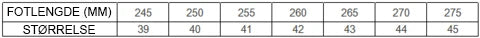 STØRRELSESOVERSIKT
