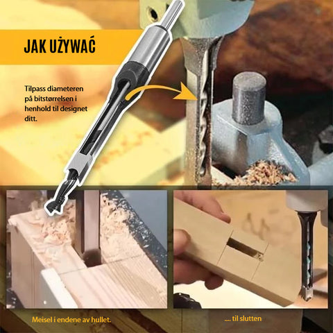 Treverk er lett som peasy med disse Square Wood Meisel. Oppnå en jevn, symmetrisk overflate for alle tremøbler, dører og vinduer som trenger et kvadratisk hull ved hjelp av denne Square Wood Meisel. Den gjør borepressen din til en skjæremaskin som produserer rene, firkantede kutt for dine trebearbeidingsprosjekter.